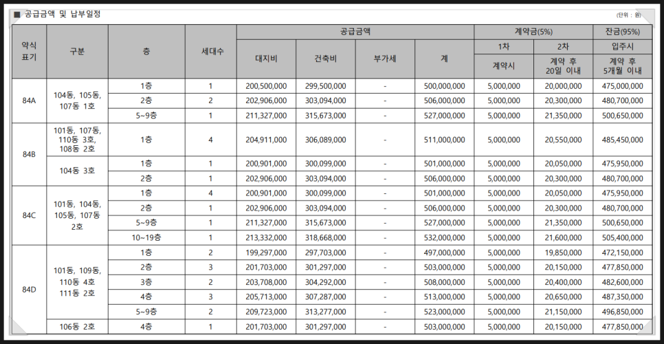 이번 무순위 공급은 총 30세대로, 모두 84㎡ 타입이며 다양한 평면(84A~84D)으로 구성되어 선택의 폭도 넓습니다.